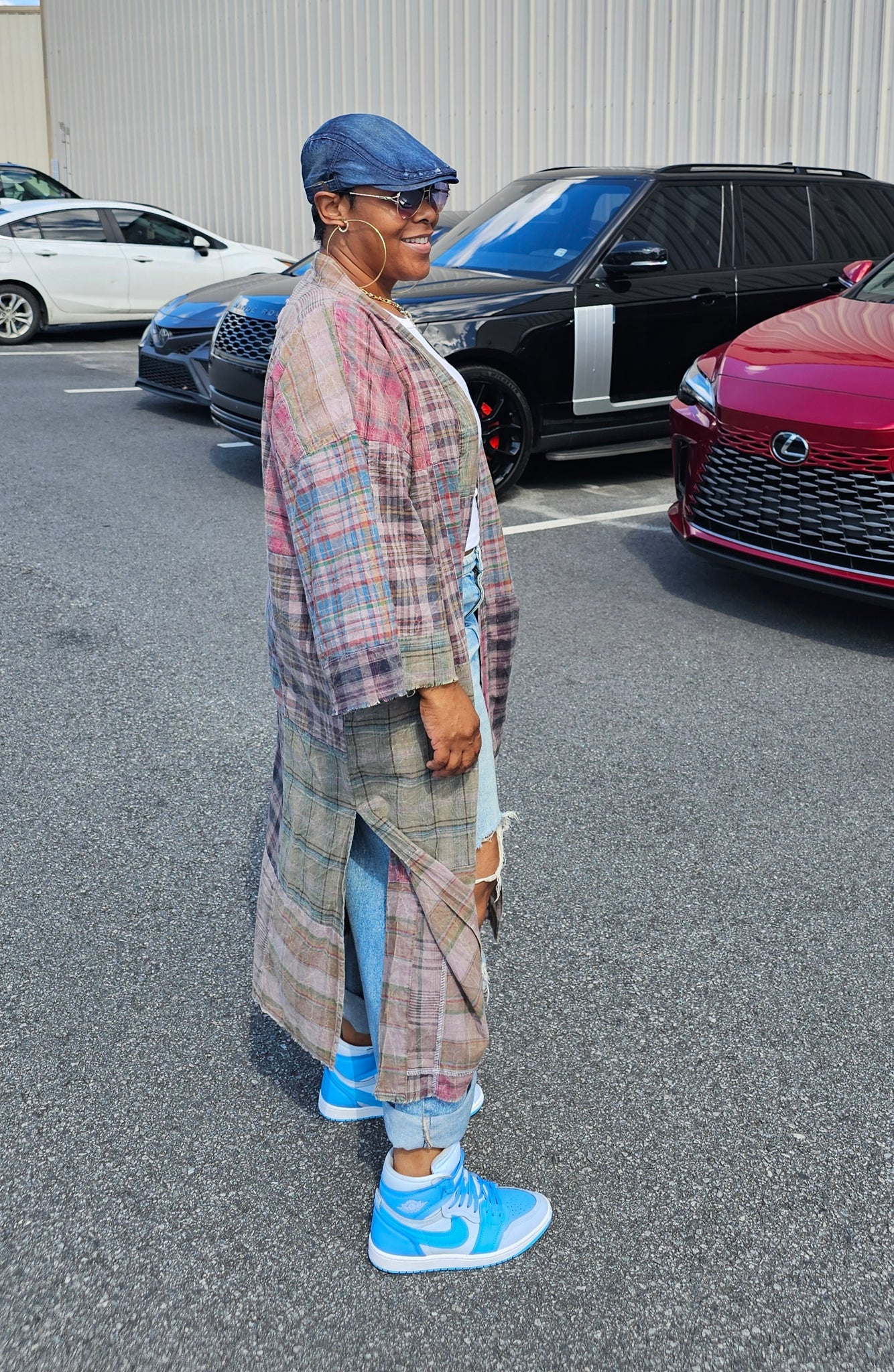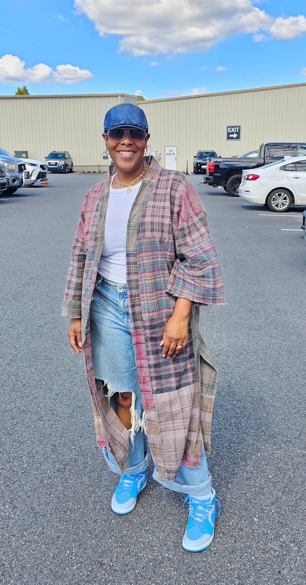 The multi-plaid duster is perfect for all your outdoor festivities for Fall. Throw it over a bodysuit, jeans, shorts, skirt. Its casual and chic.