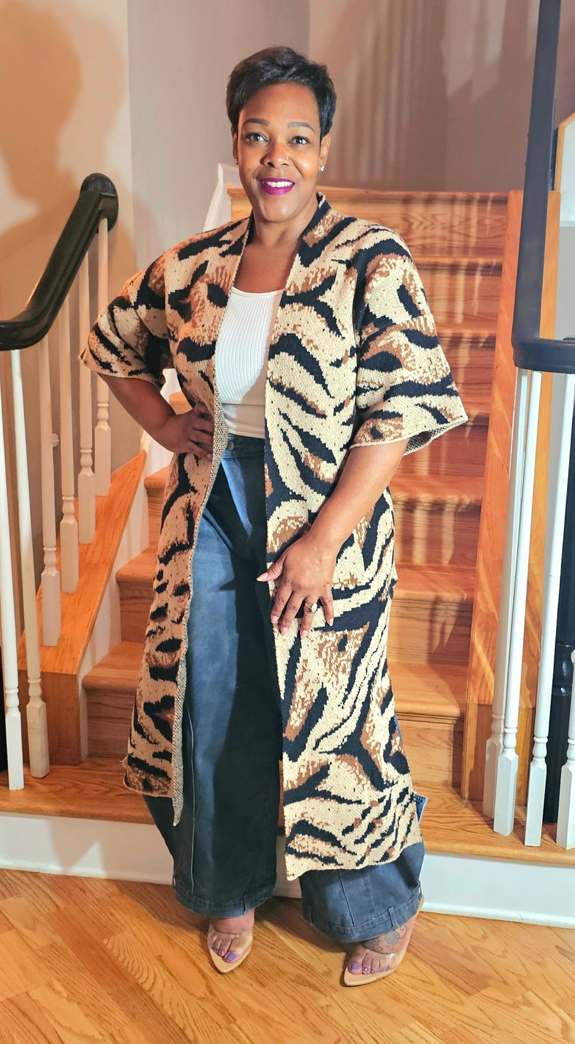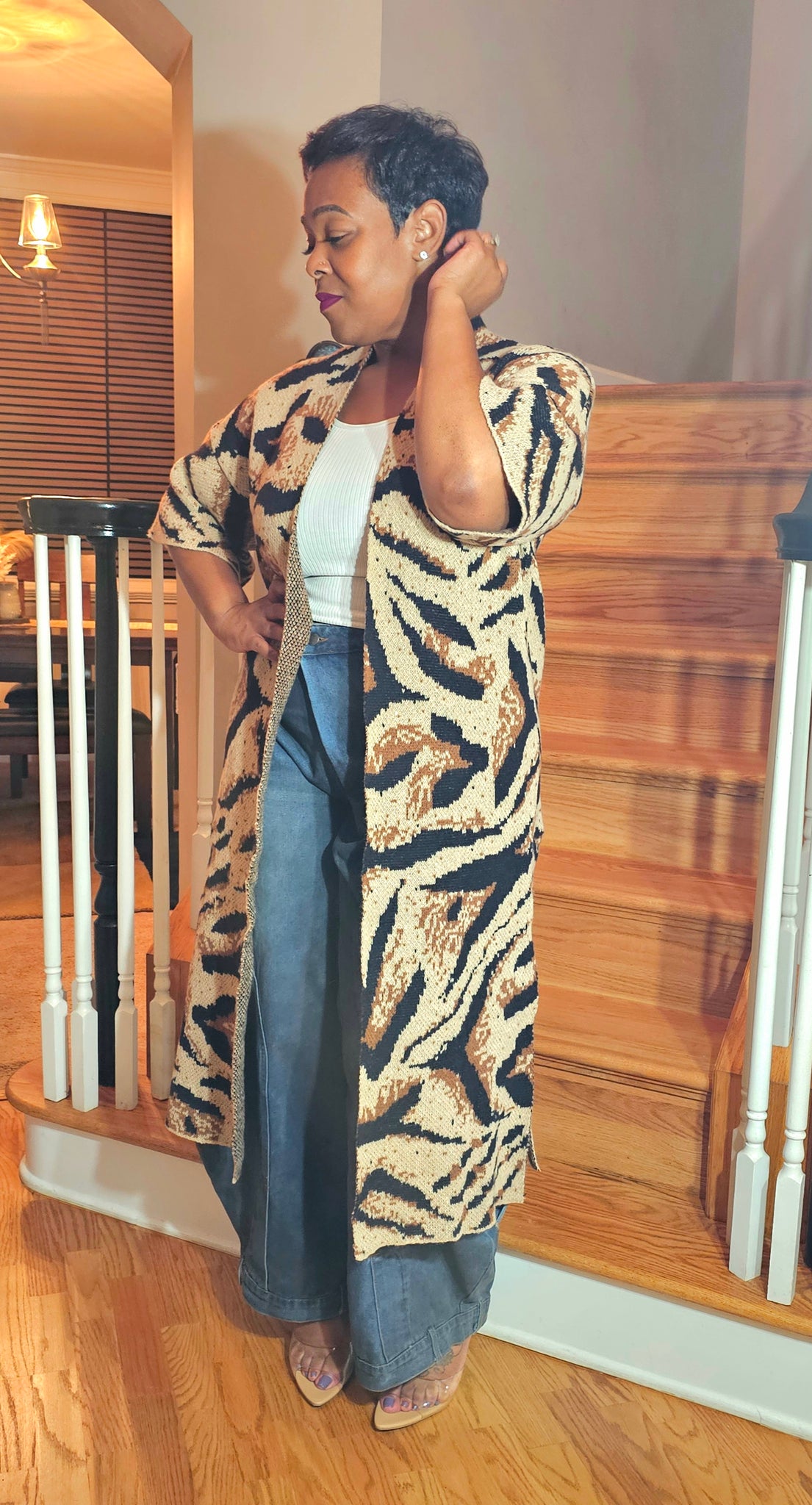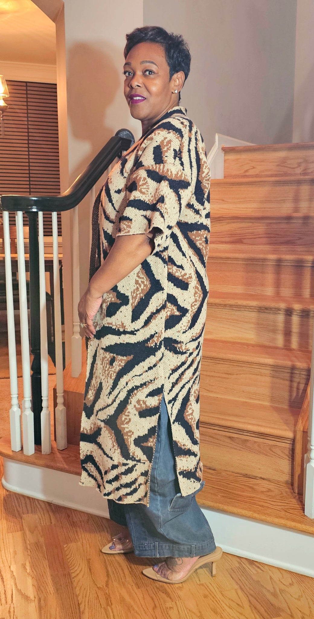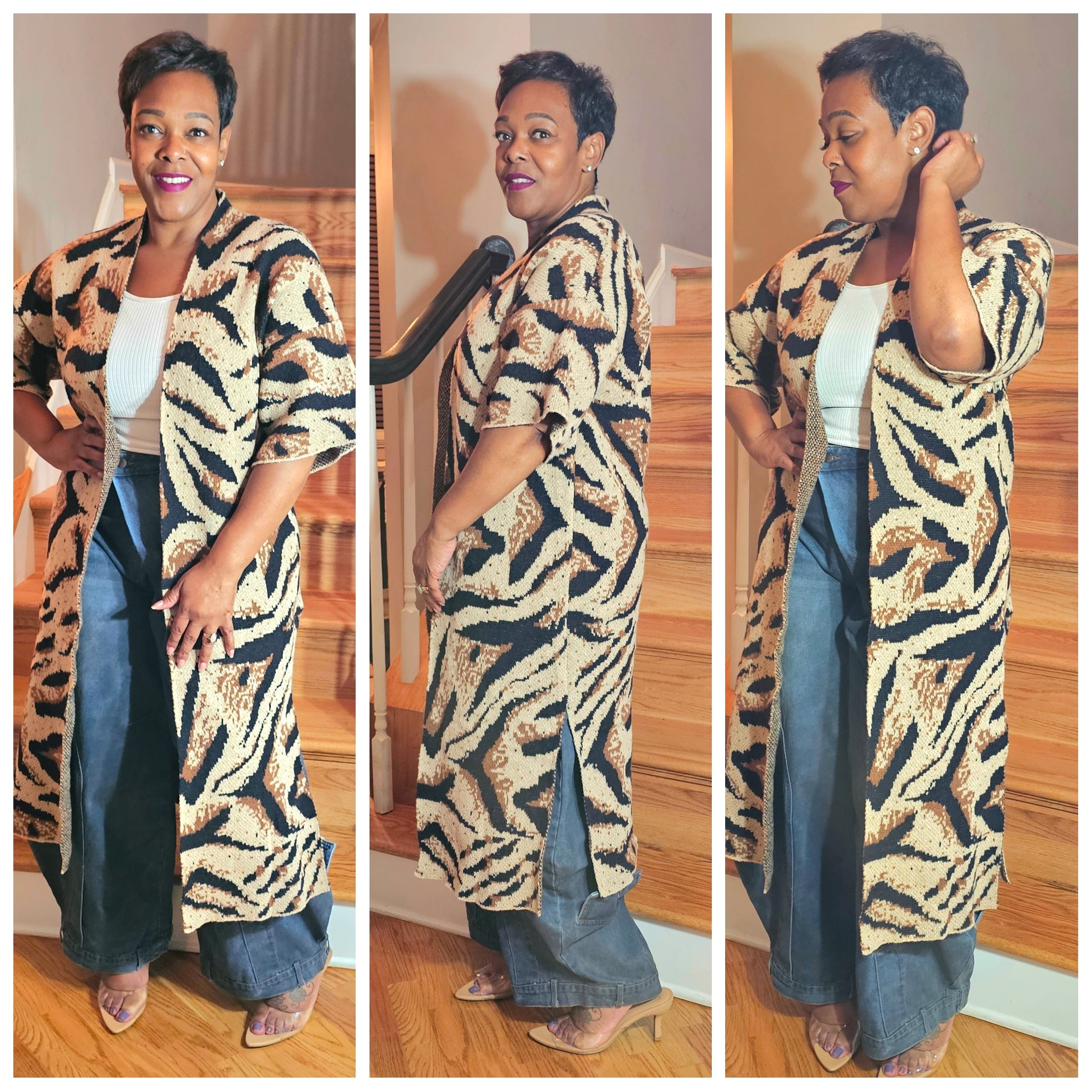 Animal print is always a Go to. This knit sweater cardigan is a must for your Fall/Winter wardrobe.